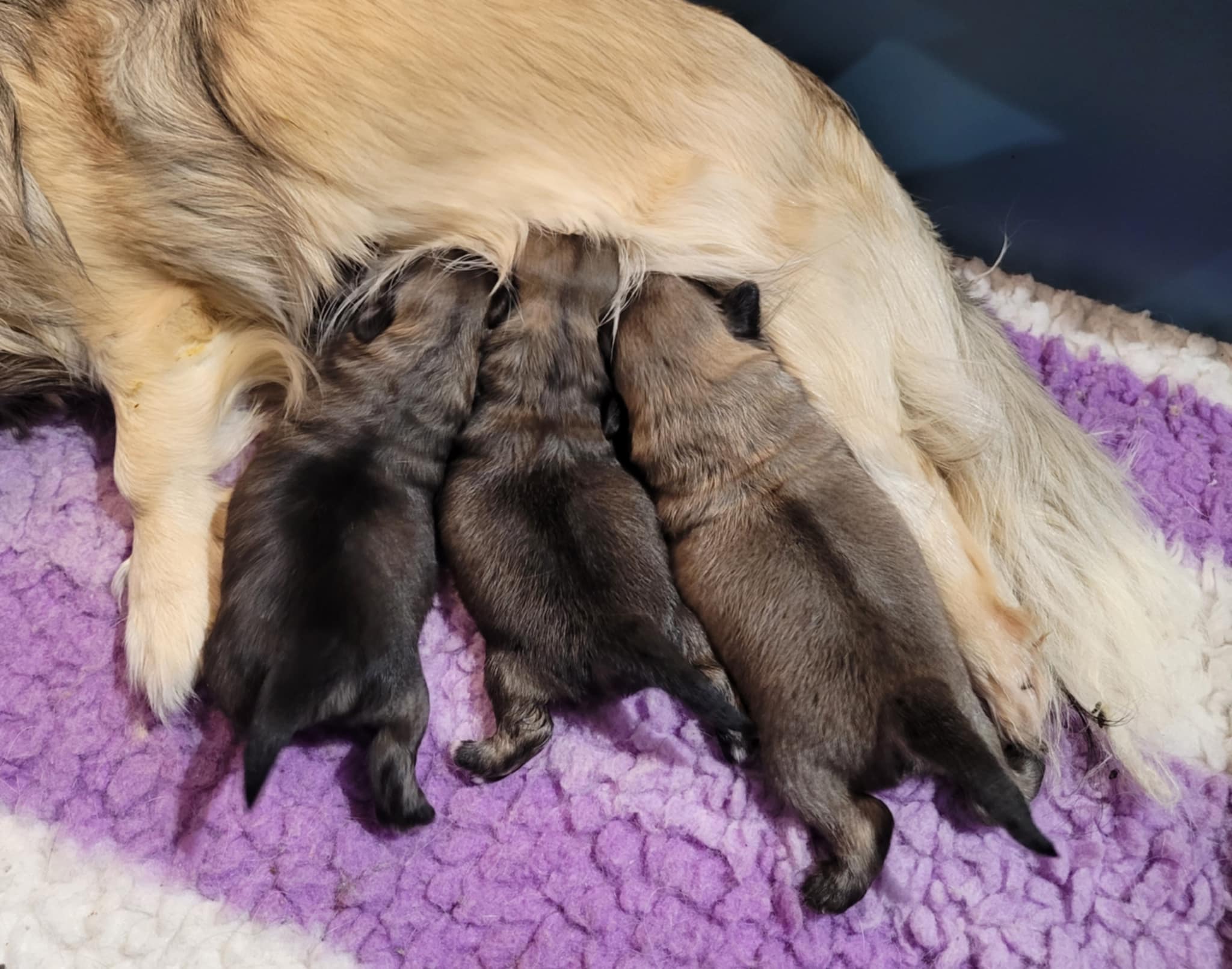 3 puppies (1 male & 2 females). Colors: all puppies are sable color.